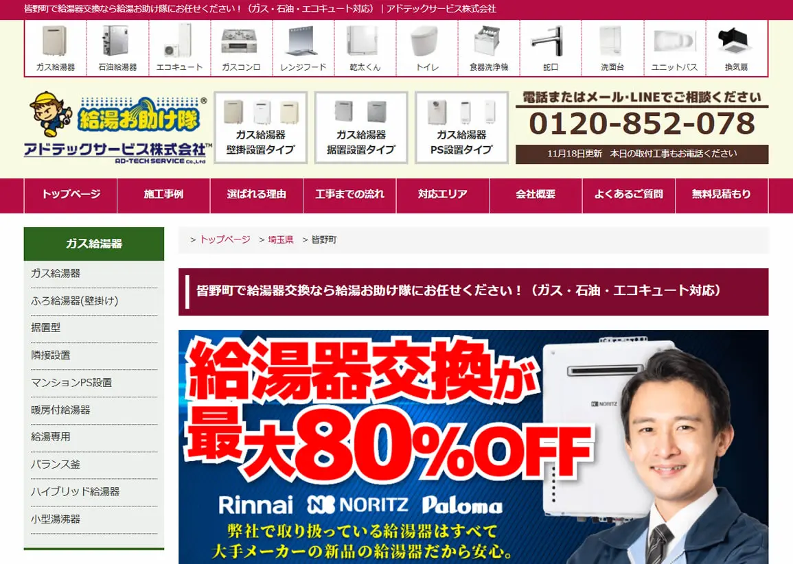 - 三大給湯器メーカー(リンナイ・ノーリツ・パロマ)の正規販売店