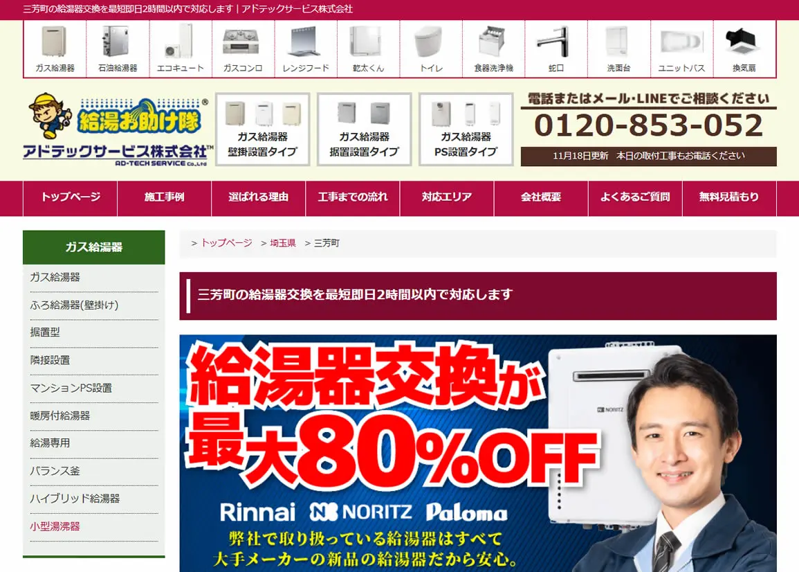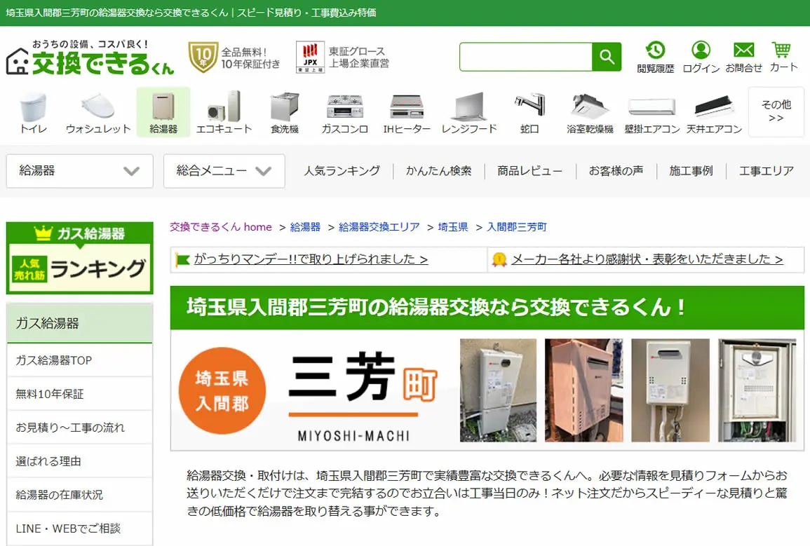 2025年5月にガス給湯器174機種の価格を平均17,035円値下げしており、交渉なしでの低価格を強みとしています。