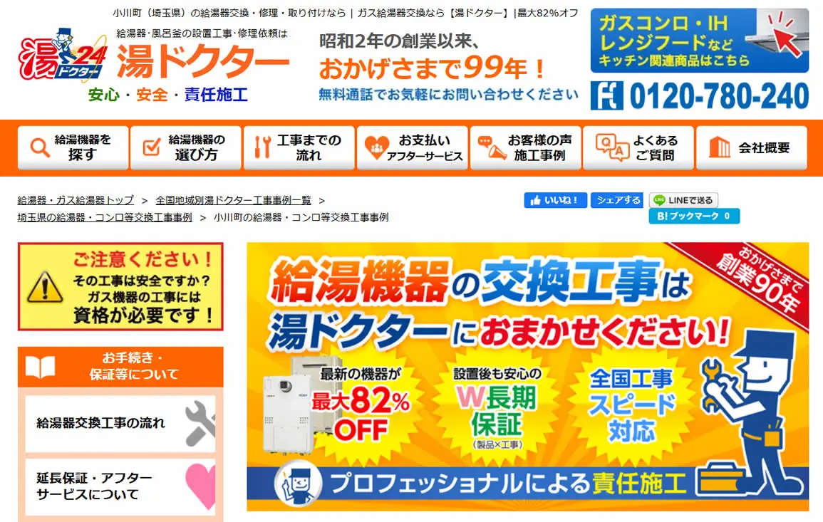 ガス給湯器が最大92%オフになるので、工事費用を抑えたい方に最適です。埼玉県全域に対応しており、即日対応が可能なので、「給湯器にエラーコードが出た」などのトラブルも迅速に解決できます。