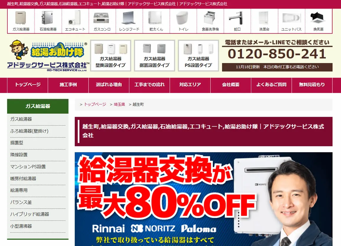 2025年5月にガス給湯器174機種の価格を平均17,035円値下げしており、交渉なしでの低価格を強みとしています。