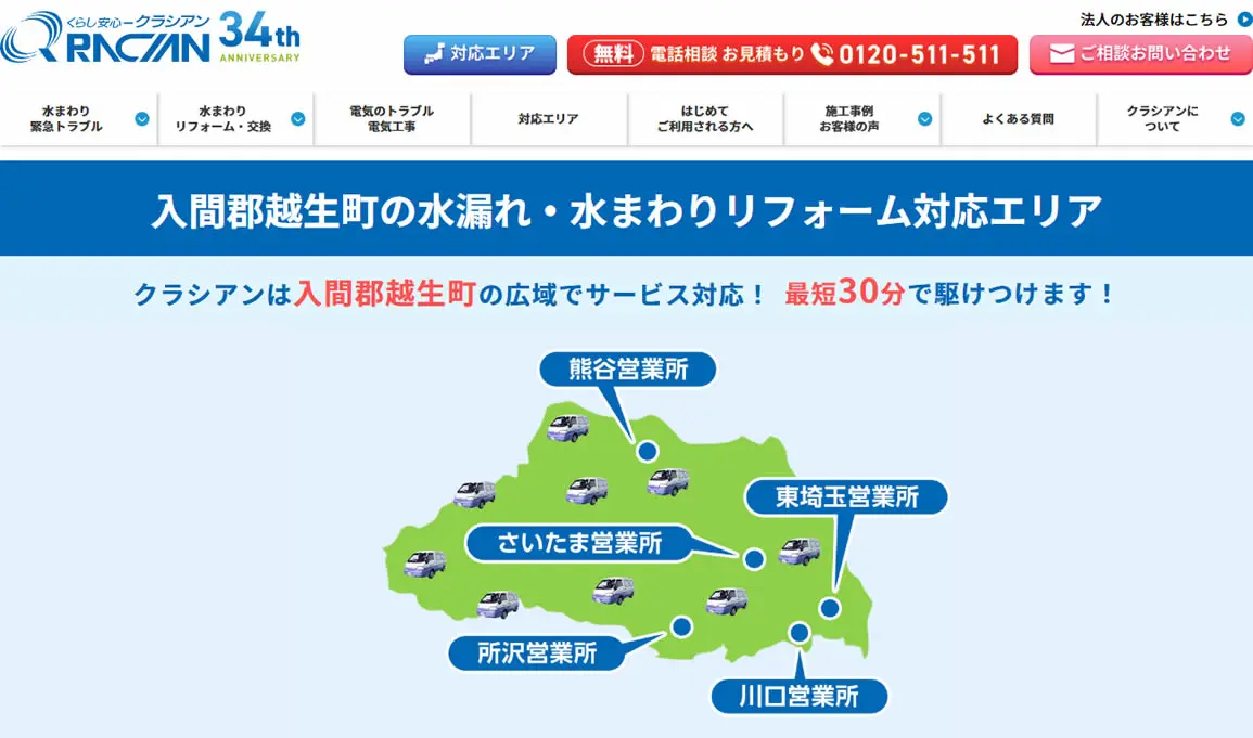 - 狭山市に営業所があり対応エリアは埼玉県全域