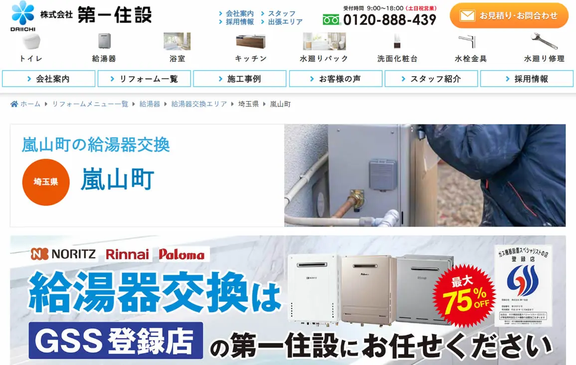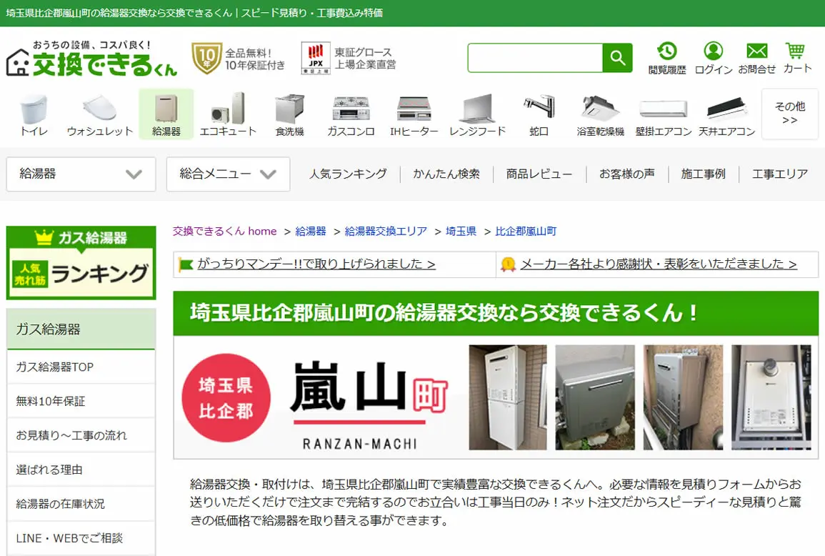 2025年5月にガス給湯器174機種の価格を平均17,035円値下げしており、交渉なしでの低価格を強みとしています。