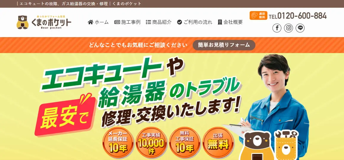 | 主な対応サービス | 給湯器・エコキュートの設置・修理・交換 |