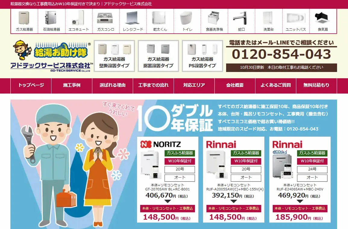 2025年5月にガス給湯器174機種の価格を平均17,035円値下げしており、交渉なしでの低価格を強みとしています。