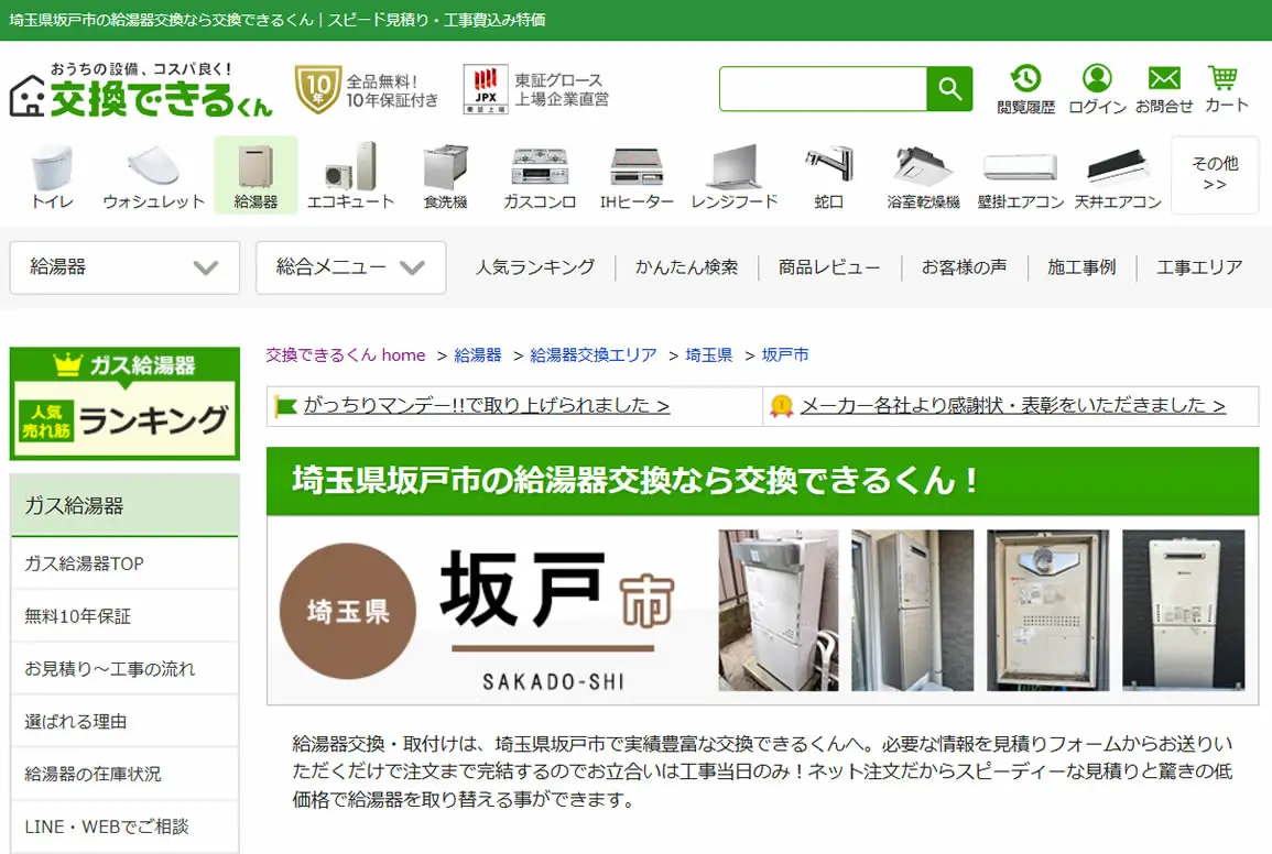 2025年5月にガス給湯器174機種の価格を平均17,035円値下げしており、交渉なしでの低価格を強みとしています。