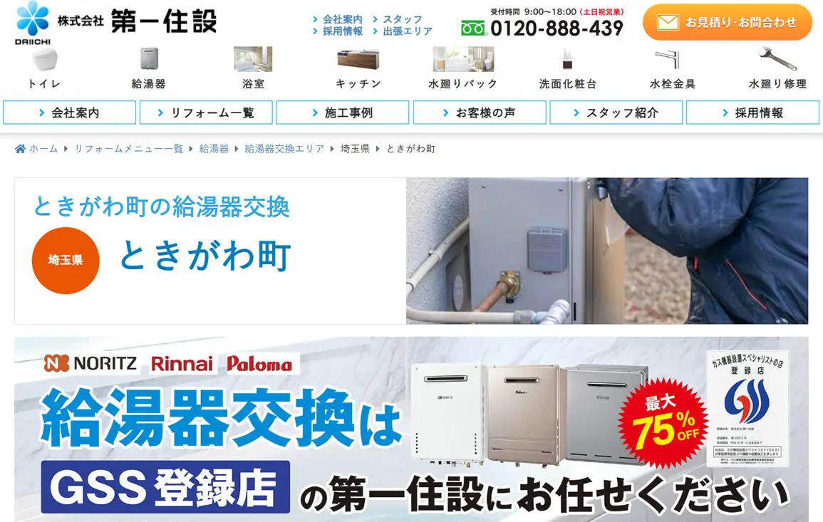 給湯器三大メーカーのリンナイ・ノーリツ・パロマの正規販売店なので、給湯器交換が初めての方でも安心して依頼できます。