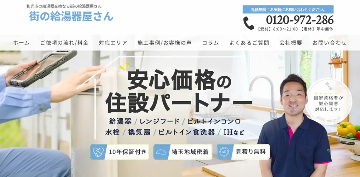 ガス給湯器が最大92%オフになるので、工事費用を抑えたい方に最適です。埼玉県全域に対応しており、即日対応が可能なので、「給湯器にエラーコードが出た」などのトラブルも迅速に解決できます。