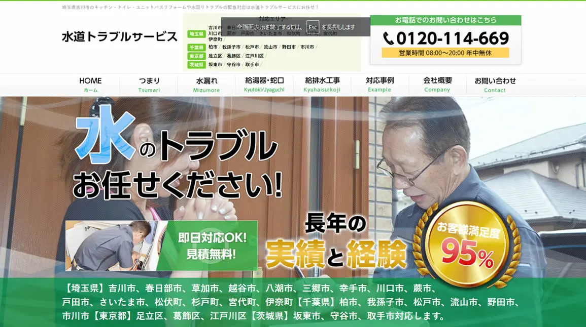 - 狭山市に営業所があり対応エリアは埼玉県全域