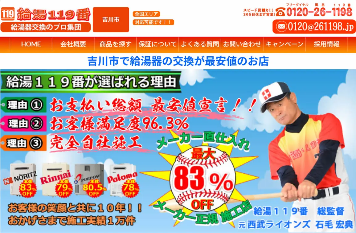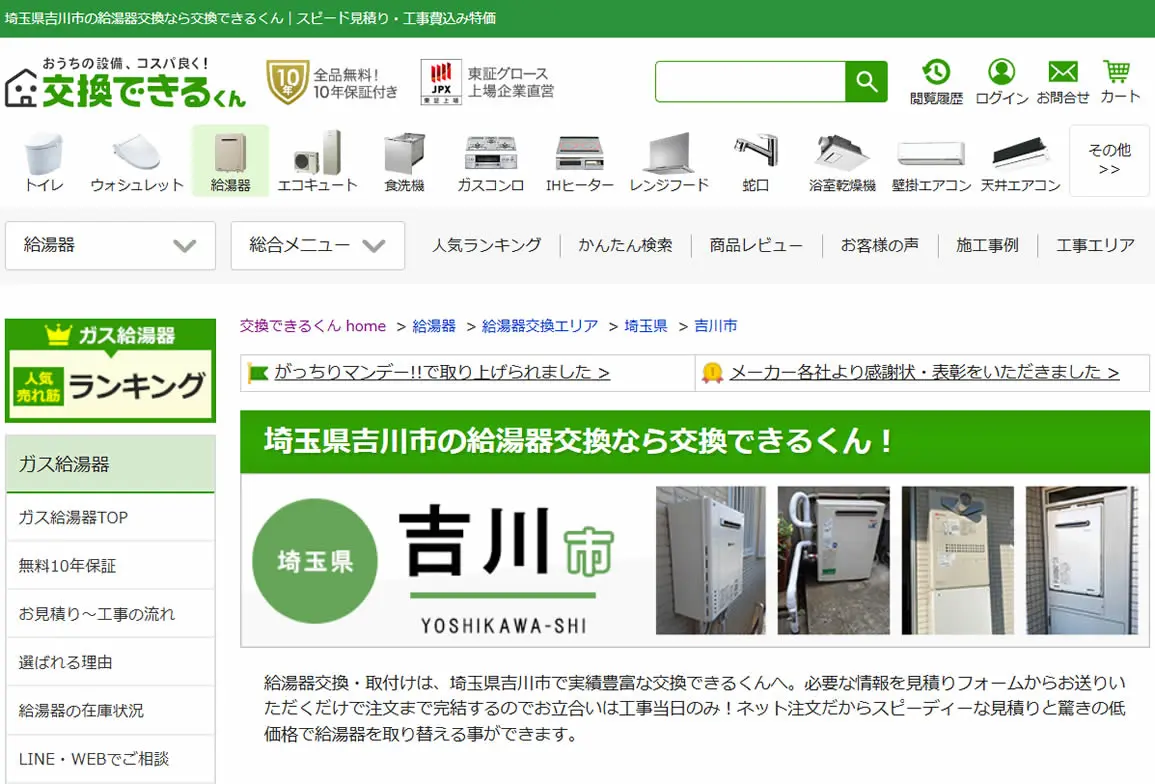 2025年5月にガス給湯器174機種の価格を平均17,035円値下げしており、交渉なしでの低価格を強みとしています。