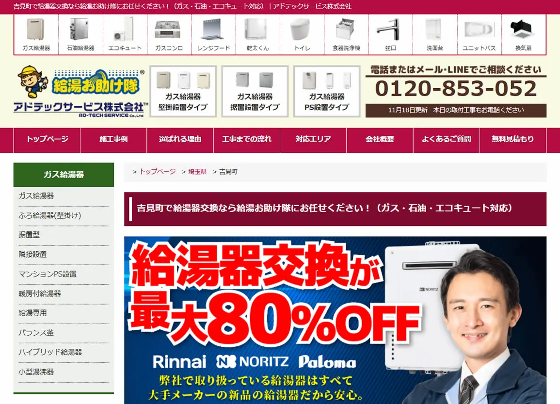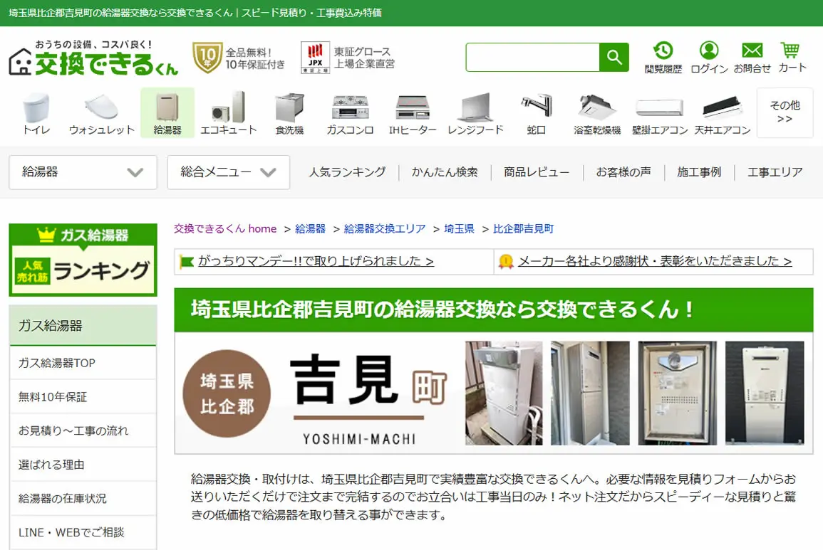 2025年5月にガス給湯器174機種の価格を平均17,035円値下げしており、交渉なしでの低価格を強みとしています。