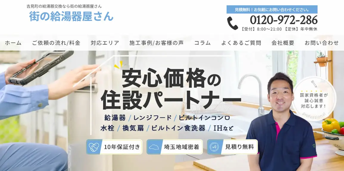 ガス給湯器が最大92%オフになるので、工事費用を抑えたい方に最適です。埼玉県全域に対応しており、即日対応が可能なので、「給湯器にエラーコードが出た」などのトラブルも迅速に解決できます。